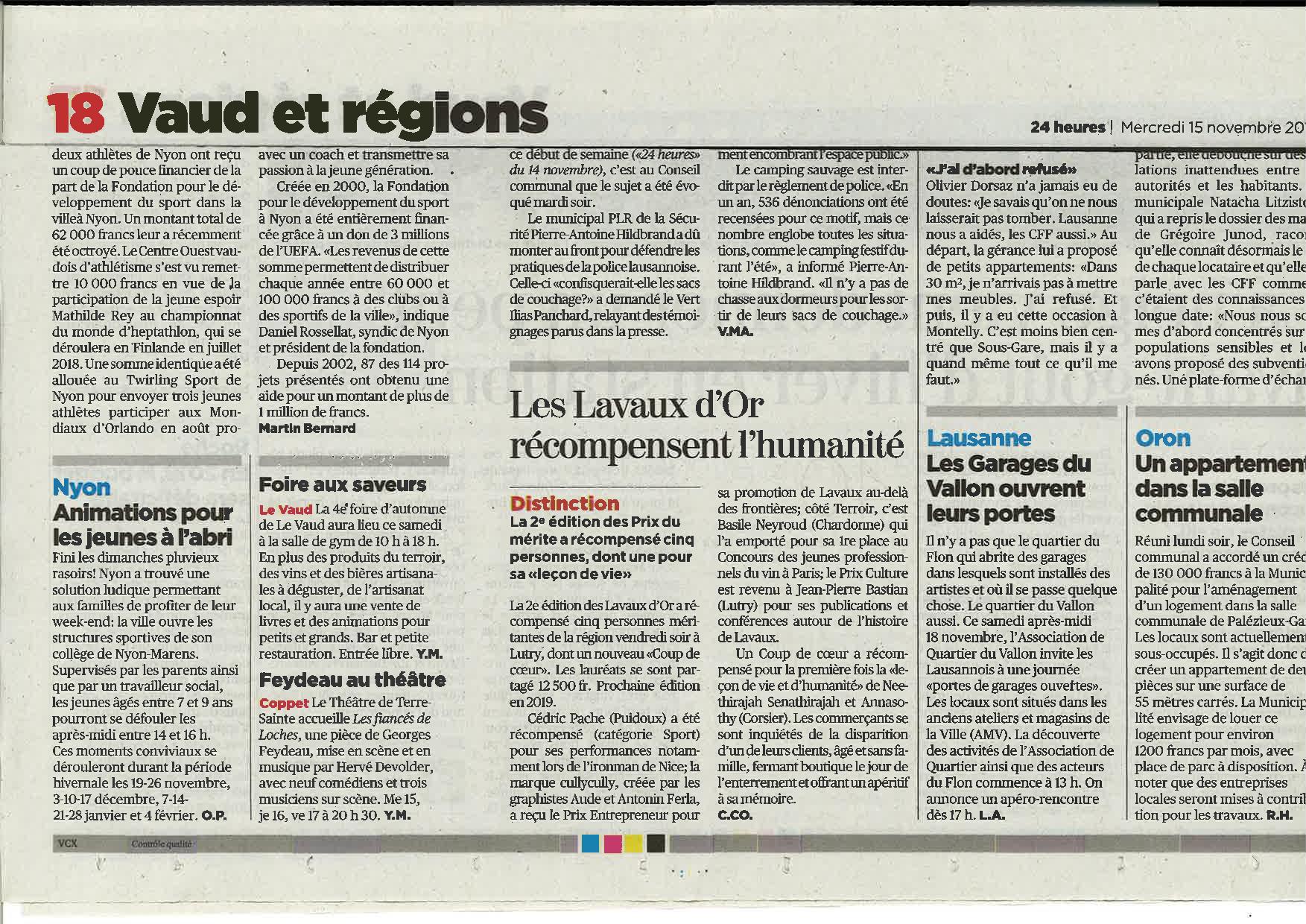 Le 14 heures annonce que les Lavaux d’Or récompensent l’humanité (édition digitale du 15 novembre 2017)