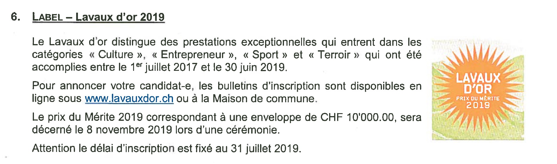 Lavaux d’Or 2019 – inscriptions (Le Corsieran) by ldesiebenthal | Aug 22, 2019 | Edition 2019, Médias | 0 comments Publication des inscriptions des Lavaux d’Or 2019 par le Corsiéran, journal de Corsier-sur-Vevey www.corsier-sur-vevey.ch